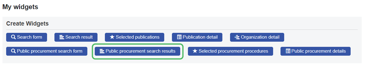 Public procurement search result widget